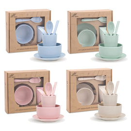Il s'agit d'un ensemble de vaisselle pour bébé qui comprend 4, 6 ou 8 pièces, selon la taille de l'ensemble que vous choisissez. L'ensemble comprend des assiettes, des bols, des tasses et parfois des ustensiles...