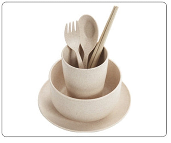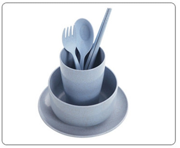 Pièces de vaisselle spécialement conçues pour les jeunes enfants, comprenant une assiette, un bol, une tasse, une fourchette, une cuillère et un couteau. La vaisselle est fabriquée dans un matériau de haute qualité et durable, garantissant qu'elle peut résister aux rigueurs de l'utilisation quotidienne des jeunes enfants.