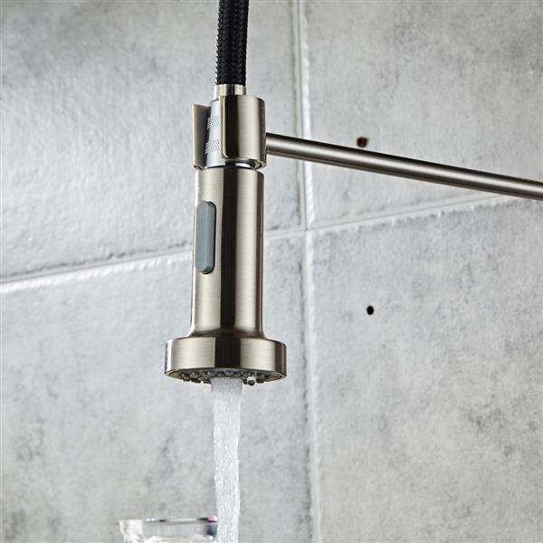Ce robinet s'intègre dans la cuisine moderne. La structure principale est en laiton massif. Le concepteur a ajouté un pulvérisateur à boutons. C'est pour vous rendre la vie plus pratique, il n'est pas nécessaire de continuer à appuyer sur la buse du pulvérisateur. Il dispose de 2 types de voies d'eau. Changez la façon traditionnelle de cuisiner. C'est l'intersection parfaite entre forme et fonction dans votre cuisine avec sa conception facile à installer et ses performances d'économie d'eau.
