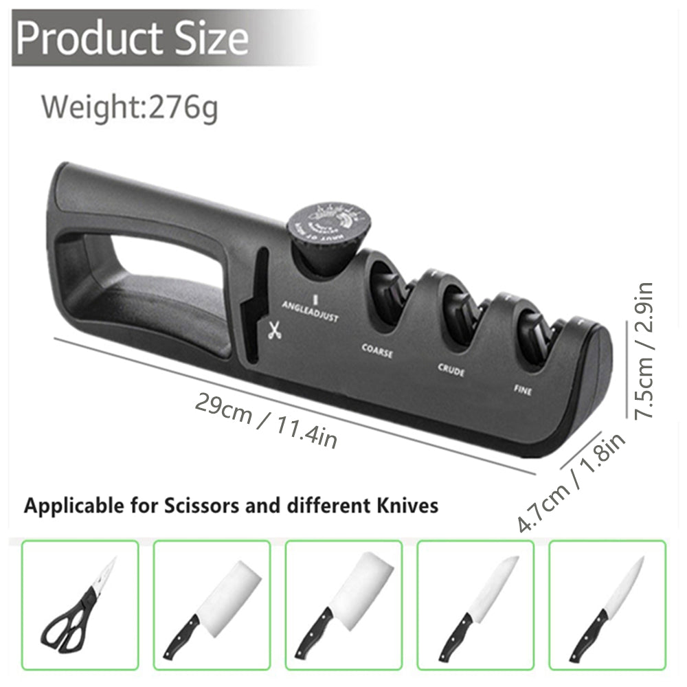 Nom du produit :: Aiguiseur de couteaux de cuisine professionnel, Aiguiseur de ciseaux, Aiguiseur manuel en 4 étapes, Pierre à aiguiser, Meuleuse, Pierre à aiguiser, Aiguiseur de couteaux Damacus