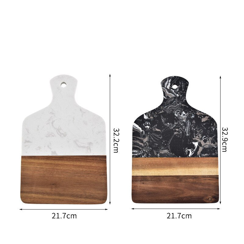 Cette planche à découper est faite de bois d'acacia et de marbre, très durable et belle. Peut non seulement être utilisé comme planche à découper, mais aussi comme plateau pour la nourriture.