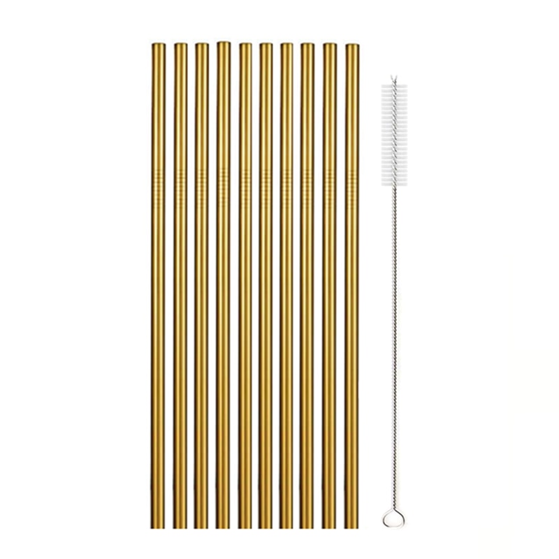 Enjoy your drinks in a sustainable and stylish way with the 10 Reusable Stainless Steel Drinking Straws. This set of straws is perfect for anyone looking for an eco-friendly alternative to plastic straws. Made with high-quality, food-grade stainless steel, these straws are durable, long-lasting, and safe for both hot and cold drinks. The smooth surface of the straws makes them comfortable to use and the sleek silver finish adds a touch of elegance to your drinking experience. Included in this set are 10 reusable stainless steel straws in a choice of colours, each with a standard size and shape, perfect for a variety of drinks, including smoothies, cocktails, and more. The straws are also easy to clean and maintain, simply rinse them with soap and water after each use. Whether you're looking to reduce your environmental footprint or simply want to enjoy your drinks in style, these 10 Reusable Stainless Steel Drinking Straws are the perfect choice. So why wait? Order your set today and start enjoying a sustainable and stylish drinking experience