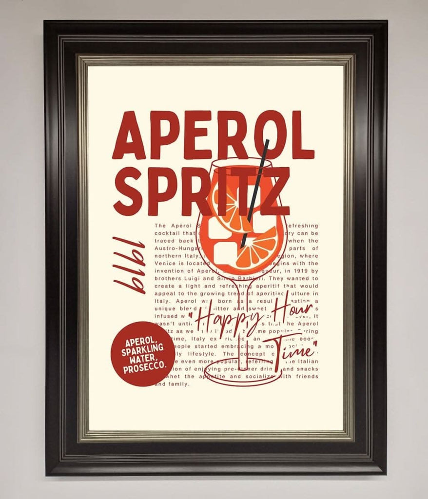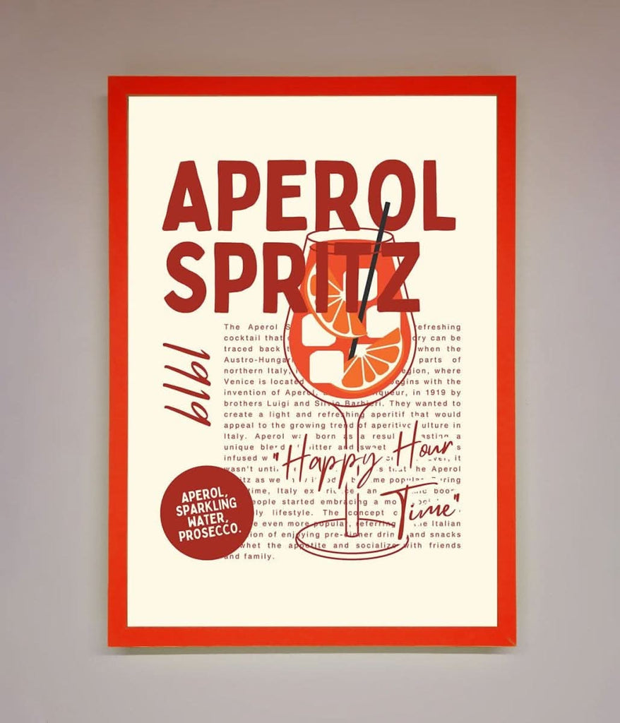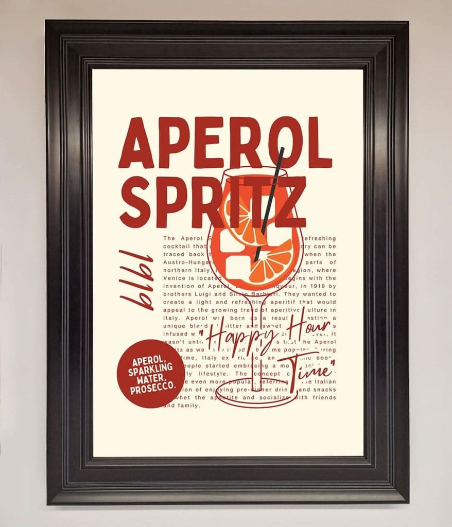Elevate your space with our Aperol Spritz Happy Hour Cocktail Framed Wall Art. Perfect for cocktail enthusiasts, this vibrant piece captures the essence of a refreshing Aperol Spritz, adding a splash of color and sophistication to any room. Our collection offers a range of sizes and frame choices, allowing you to customize the perfect fit for your decor. Whether you're sprucing up your home bar or kitchen, this artwork is a delightful reminder of happy hour. Shop now and infuse your space with style and spirit!