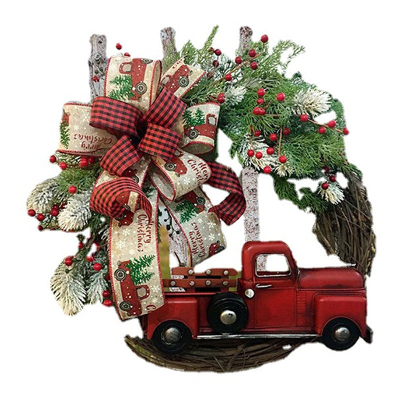 Classic Christmas Elegance: Elevate your holiday decor with the timeless charm of our Artificial Christmas Wreath featuring a quaint vintage truck. This wreath exudes a classic aesthetic that evokes memories of cherished holiday traditions.